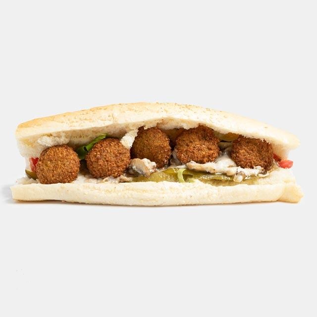 فلافل، خیارشور، گوجه، کاهو، سس مخصوص، نان باگت