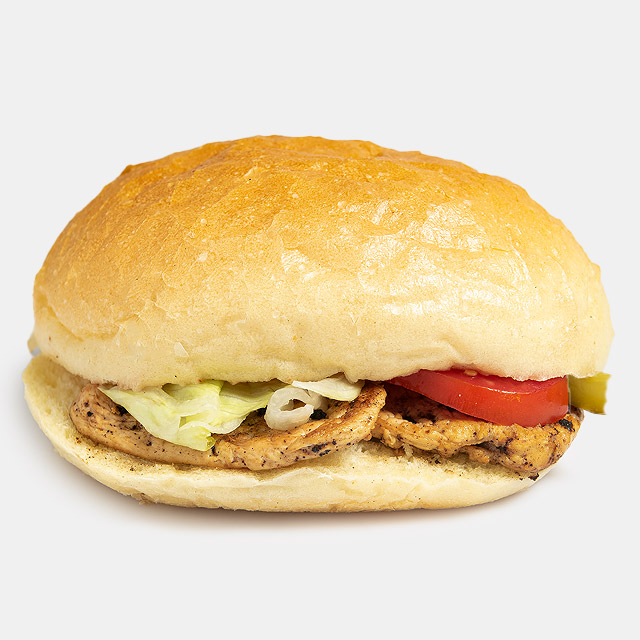 یک عدد برگر فیلە مرغ گریل شدە دست ساز۱۰۵ گرمی، خیارشور، گوجە،کلم جعفری، فرنچ فرای ، سس مخصوص، نان گرد، در صورت اتمام نان گرد با نان باگت دونون سرو می شود